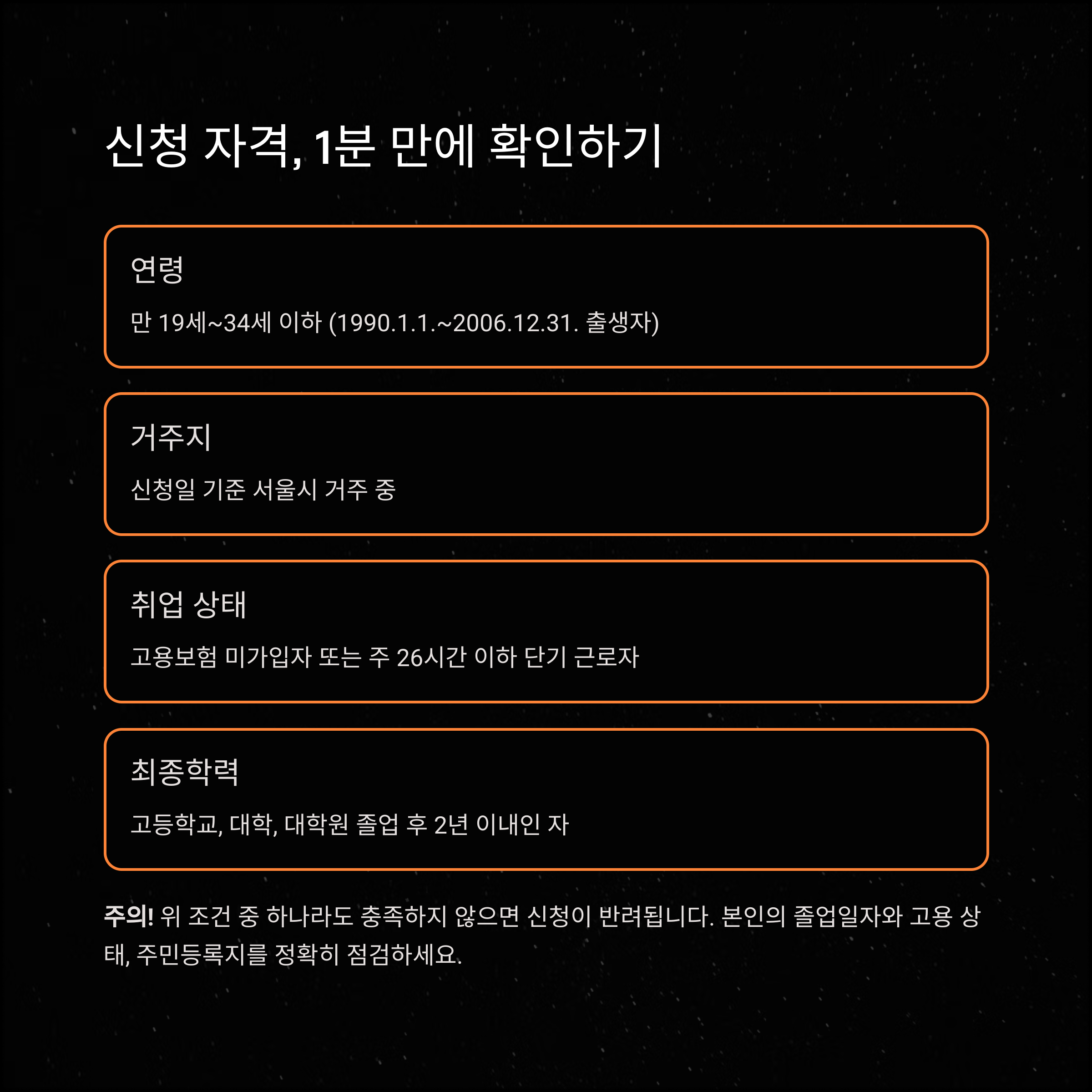 | 거주지 | 신청일 기준 서울시 거주 중 |