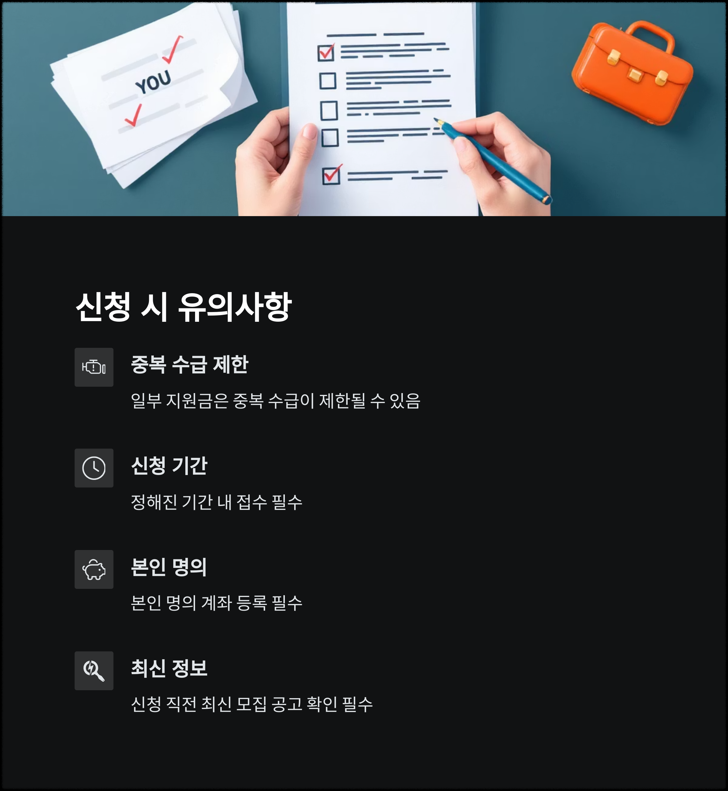 또한 거짓 또는 중복 수급 시 환수 처분 및 향후 지원 제한이 발생할 수 있어 주의해야 합니다.