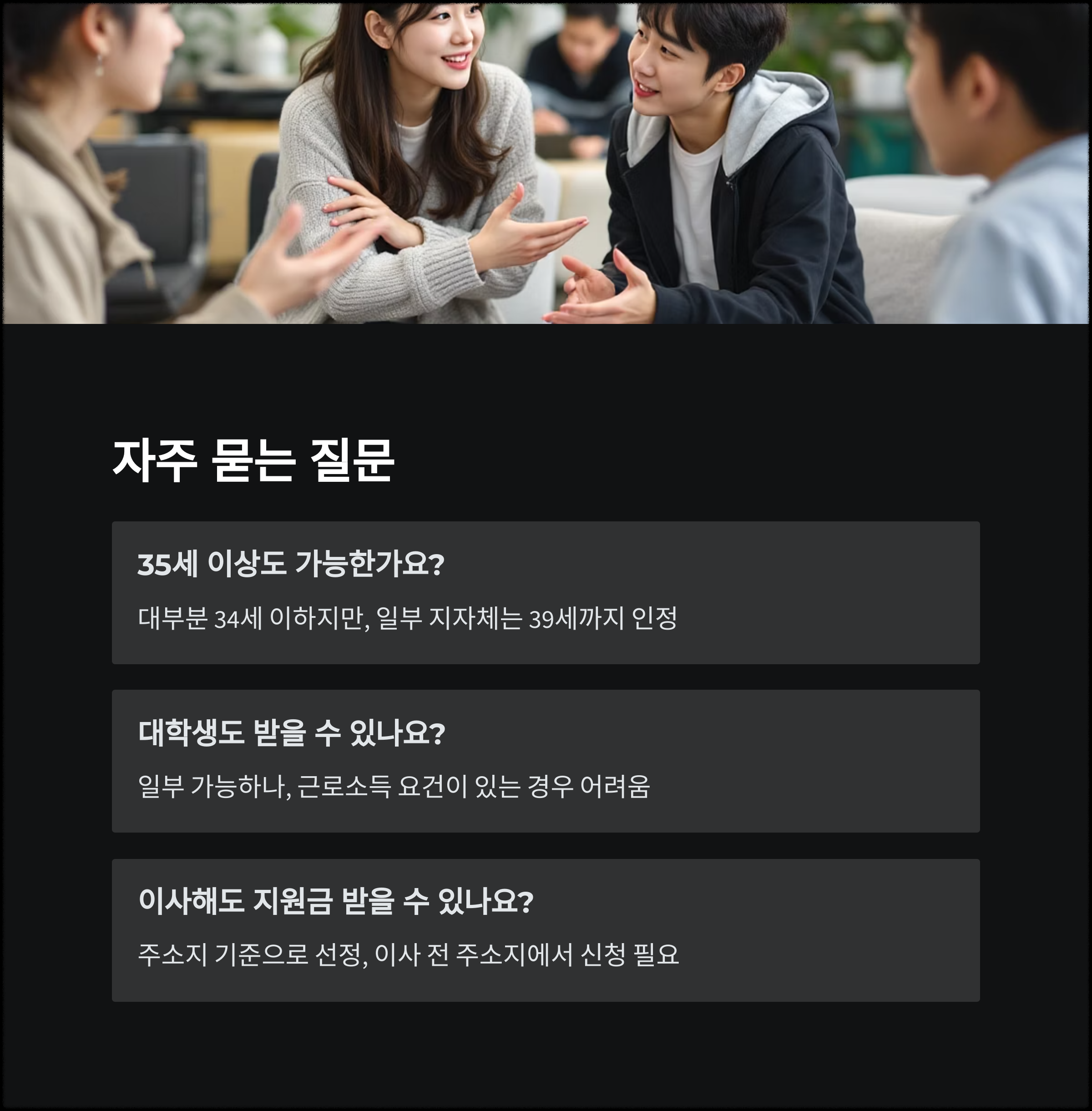→ 대부분은 만 34세 이하까지 가능하나, 일부 지자체는 39세까지 인정하는 경우도 있습니다.